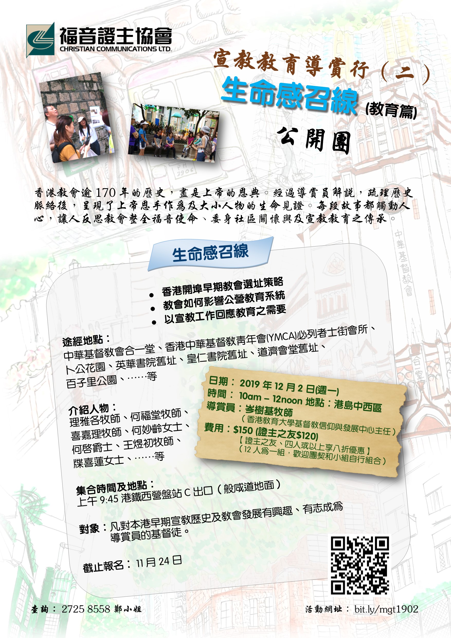 (已成團)宣教教育導賞行(二)生命感召線 (教育篇)公開團